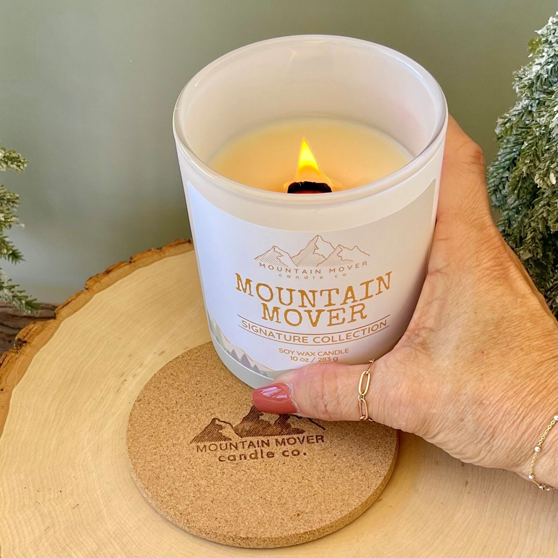 Protect your surfaces in style with our Mountain Mover Candle Co. branded cork coaster. This 4" natural cork round is the perfect companion for your candle with a non-slip, heat-resistant base that helps prevent scratches, stains, and heat damage while your candle burns.