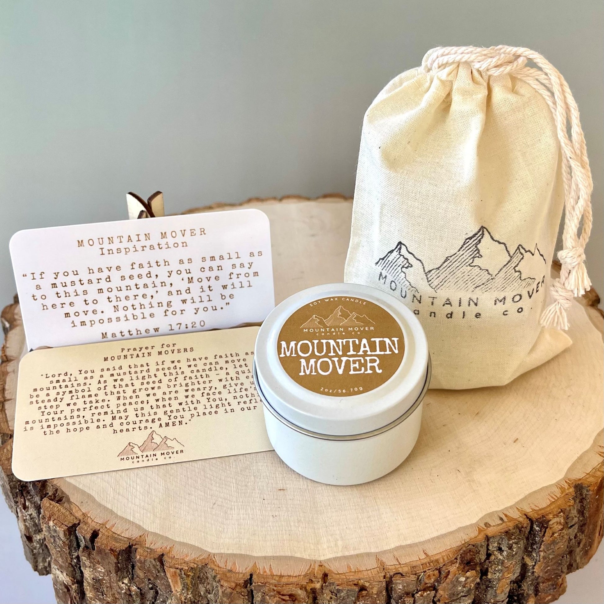 Inspired by Matthew 17:20, Mountain Mover is our namesake candle. A grounded, tranquil blend that captures the quiet strength of nature and the courage of unwavering faith. Earthy, fresh, and deeply calming, it’s a scent that invites reflection and peace. Infused with essential oils including patchouli, juniper, cedar, lemon, and sandalwood, this candle offers an elevated, forest-inspired experience for the spirit and the senses.