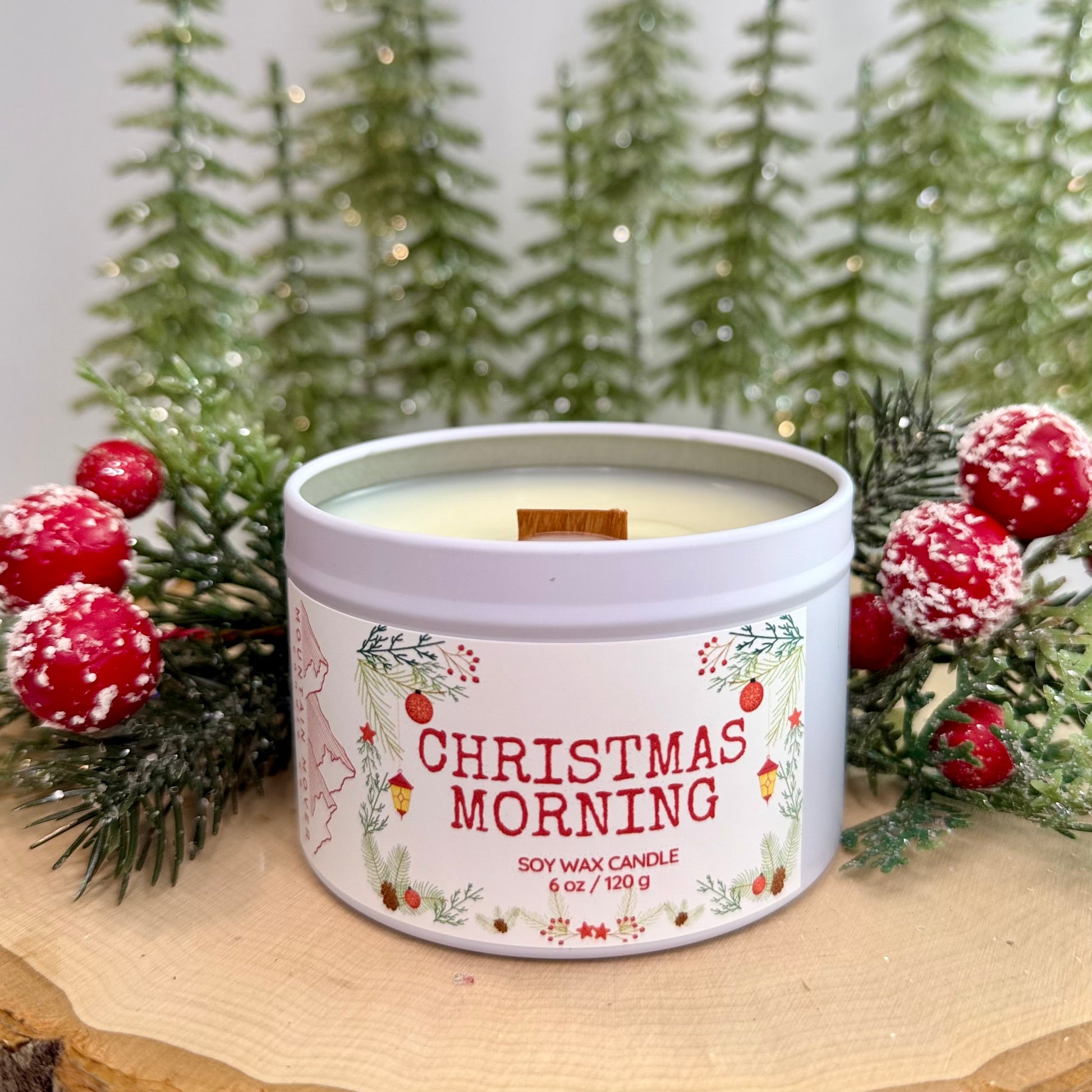 Inspired by the magic of childhood wonder, Christmas Morning captures the feeling of waking up to twinkling lights, cozy pajamas, and the joy of gathering around the tree. Bright notes of citrus, fir, and festive red berries fill the air with anticipation, while soft hints of green leaf and rose bring a touch of warmth and familiarity. As the fragrance unfolds, creamy vanilla and velvety musk wrap everything in comfort, just like the memories that linger long after the last gift is opened.